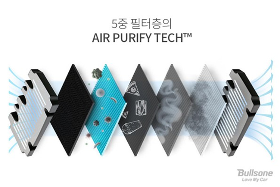 불스원 ‘프리미엄 공기청정 활성탄 차량용 에어컨 필터’는 5중 필터층의 Air Purify Tech로 약 20평형의 공기청정기와 유사한 공기청정능력을 갖췄습니다! 또한, 필터 내 세균과 곰팡이의 번식을 억제하는 효과를 가졌으며, 항균 처리된 원단으로 보다 쾌적한 실내 환경을 만들어줍니다! 여기에 더해 콜케이트층과 2개의 활성탄층은 냄새와 유해가스를 효과적으로 제거합니다!