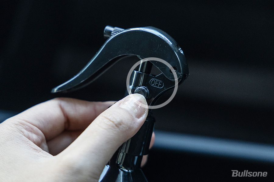 1. 제품 사용 전 스프레이 잠금장치를 ON이 되도록 눌러주세요.