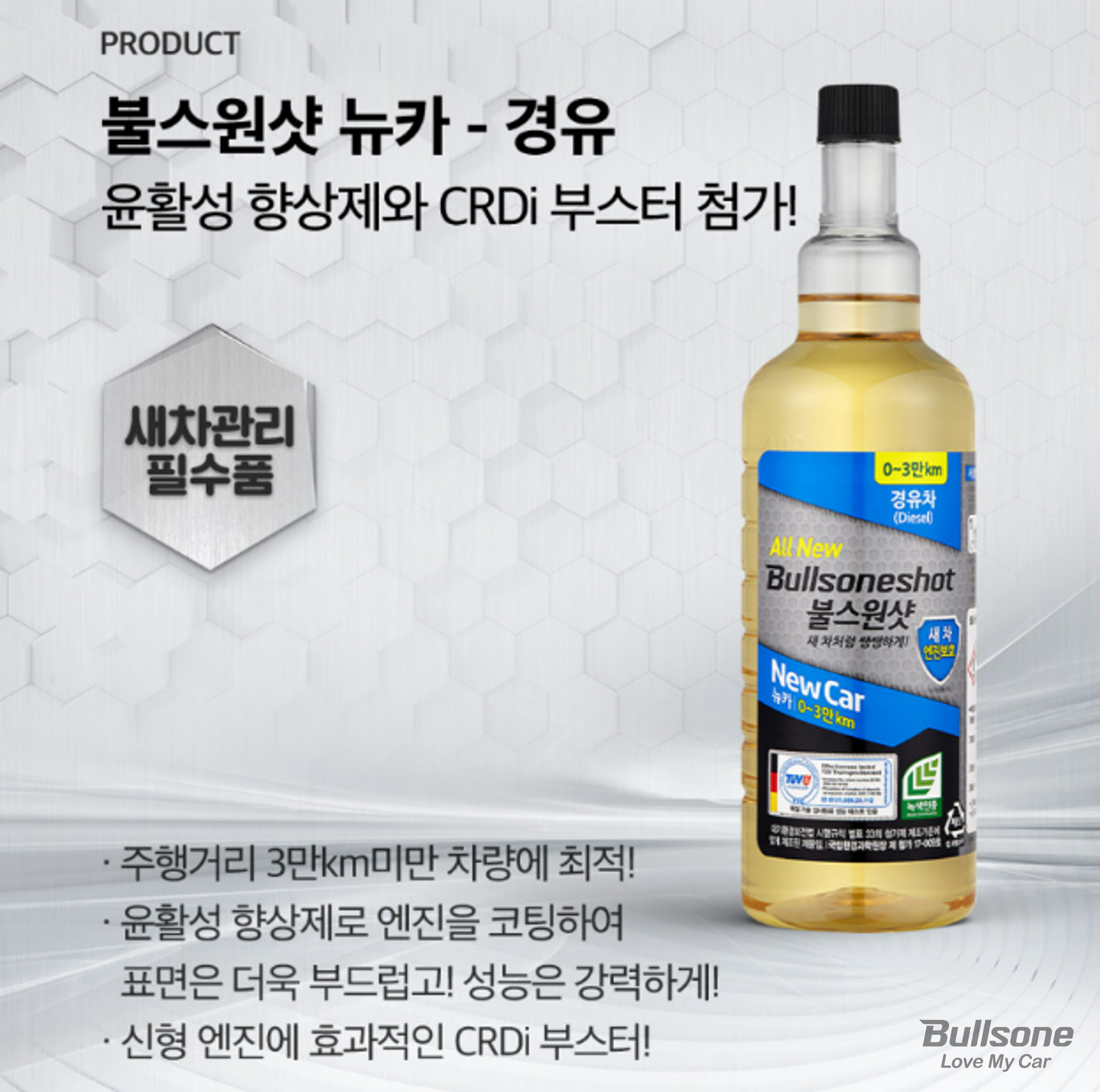 불스원샷 뉴카 경유에는 윤활성 향상제 성분이 들어있습니다. 윤활성 향상제 성분은 디젤 엔진의 분사장치가 마모되는 것을 방지하고 길들지 않은 엔진에 윤활 효과를 줍니다. 더불어 CRDi 부스터로 연소실의 엔진 때 생성을 방지해 열 전달 효율을 높이고 엔진 성능을 최적화합니다!