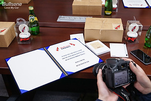 안녕하세요. 불스원입니다! 지난 토요일 선릉역 근처 불스원 본사에서는 새로운 역사가 시작됐습니다. 이게 도대체 무슨 소리인지 궁금하시죠? 다름 아닌 불스원프렌즈가 탄생했기 때문입니다. 불스원프렌즈? 그게 뭘까? 굉장히 은밀하게 진행됐기 때문에 의아하게 생각하는 분들이 많으실 텐데요. 이들은 바로 평소 자동차를 사랑하고 아끼는 사람들의 커뮤니티라고 할 수 있습니다. 그리고 마침내 불스원프렌즈를 처음으로 대면하고 본격적인 시작을 알리는 불스원프렌즈 발대식이 벚꽃이 만발했던 토요일 오후에 진행됐습니다. 날씨 좋은 봄날 오후라는 소중한 시간을 뺏는 만큼 최대한 성의를 보여드리려는 노력이 보이시나요? 하나하나 정성스럽게 만든 환영선물들을 한 치의 오차도 없이 각을 맞춰 놓고 1기 불스원프렌즈 여러분이 오시기를 설..